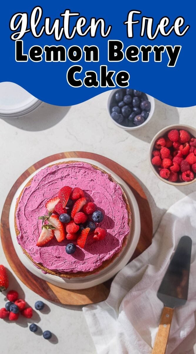 This gluten-free layer cake skips the fancy decorations in favor of the rustic look. Packed with berry flavor and the tang of lemon, it is the perfect celebration cake for Spring and Summer. Think birthdays, showers, and even Mother's Day. It stays moist for days thanks to the marscapone cheese in the cake batter.